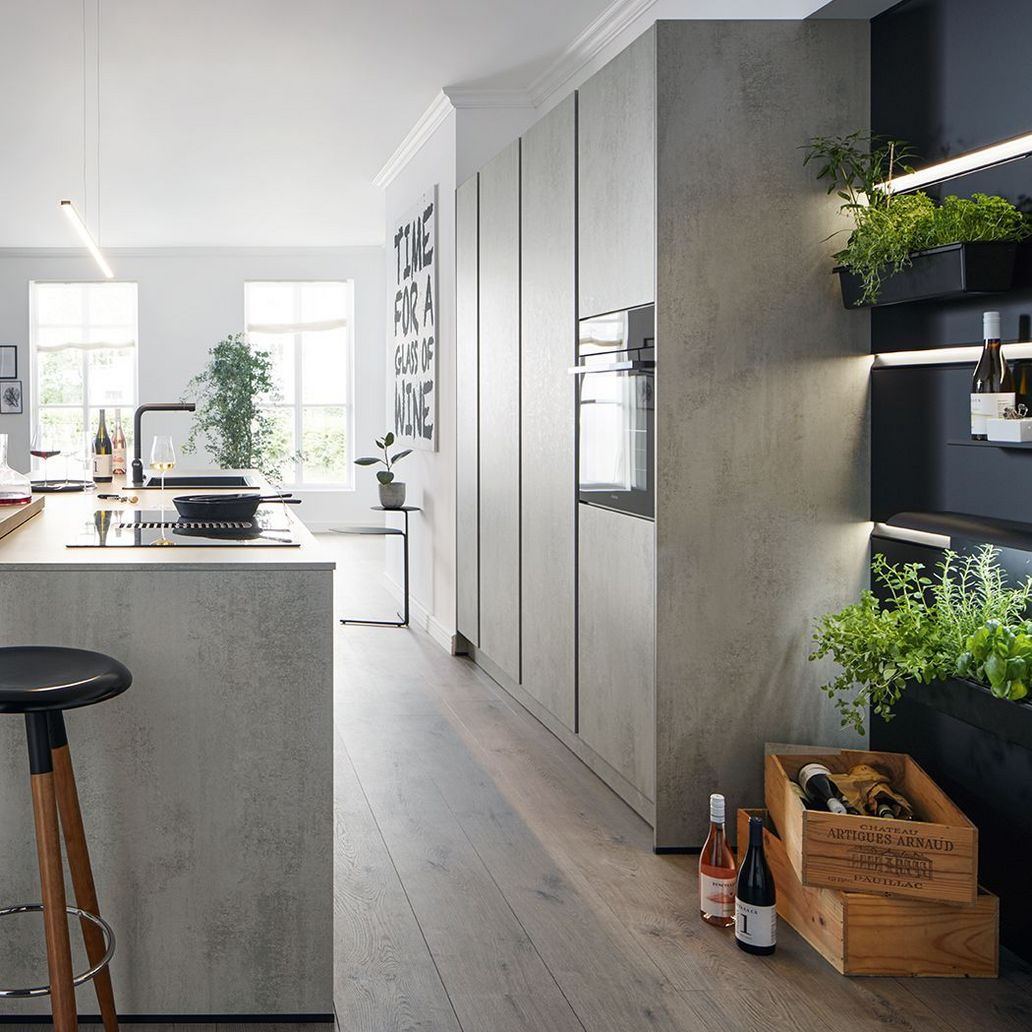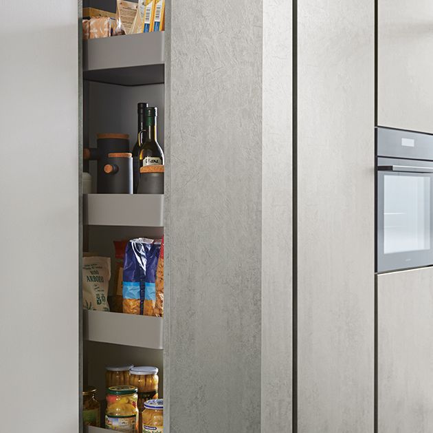 Los frentes laminados son resistentes gracias a su revestimiento de resina de melamina de alta calidad. Las superficies están disponibles en una gama de colores monocromáticos. Además, los frentes pueden presentar una textura fina y son muy populares con el efecto madera.