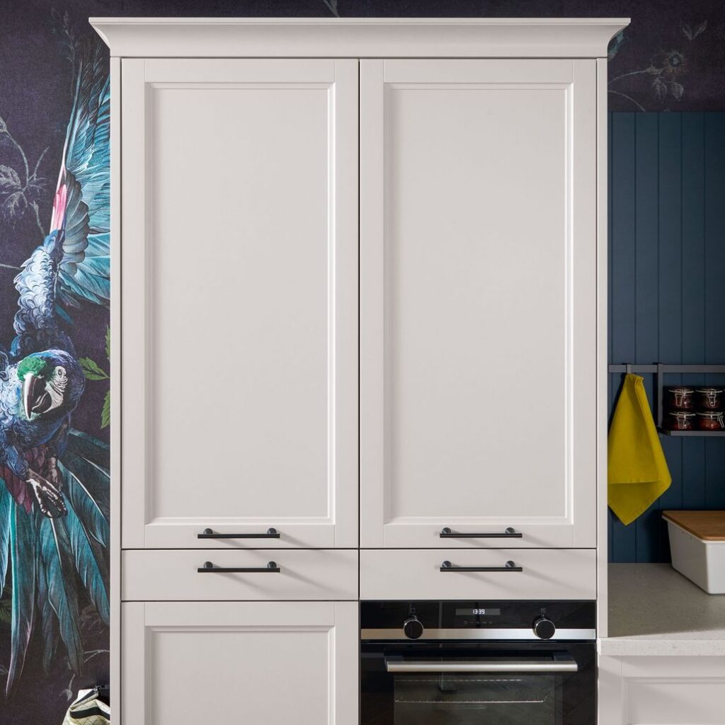 Carácter rural moderno : la versión moderna de la espaciosa cocina campestre. Los armarios altos y el amplio espacio de almacenamiento crean un ambiente ordenado y despejado donde podrá relajarse y disfrutar al máximo de la vida.