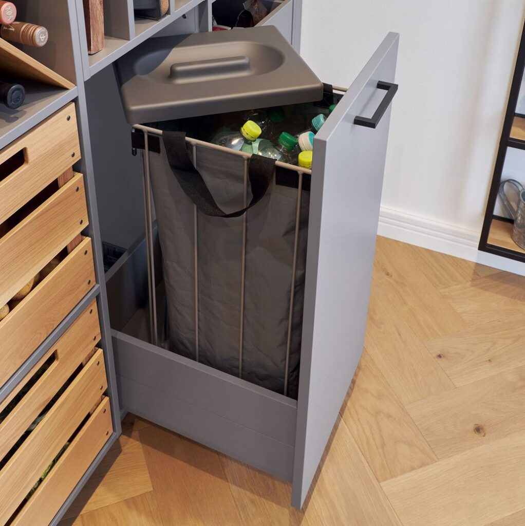 El almacenamiento de alimentos ofrece flexibilidad y multifuncionalidad similares. Aquí, una vez más, dispone de una amplia gama de opciones para crear una despensa clásica con muebles y estantes modulares o para satisfacer todas sus necesidades con cajones y armarios extraíbles.